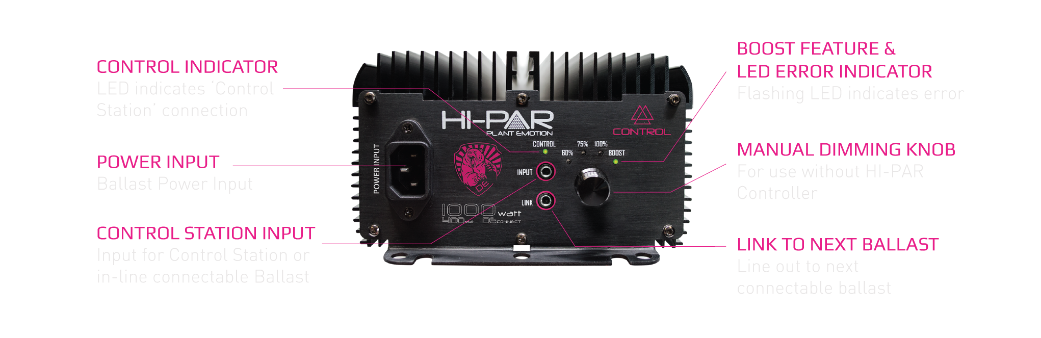 The 1000w Controllable Ballast is our most powerful intelligent 1000w ballast, ever! Utilising premium capacitors for reliability; our workhorse yields huge returns! The HI-PAR 1000w Controllable Ballast incorporates all existing smart HI-PAR technology, with the new addition of controllability! ���
