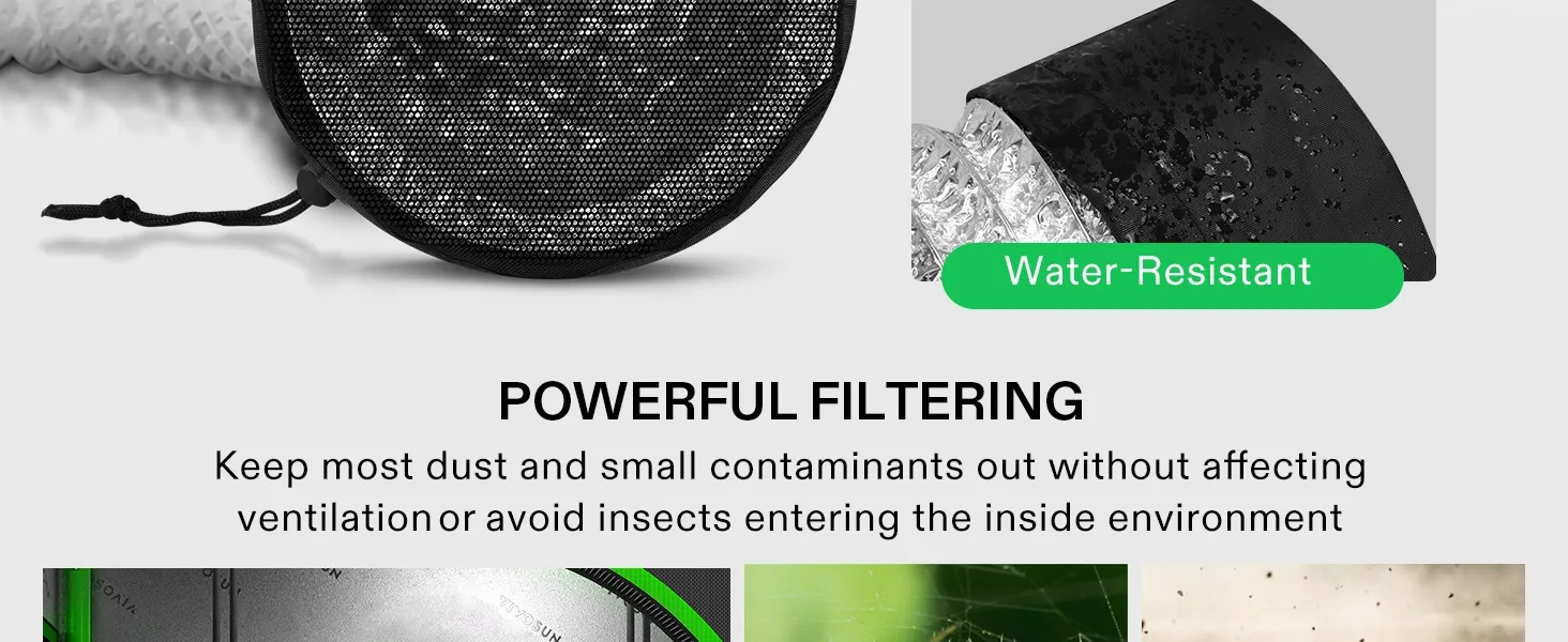 - The Vivosun vent filter dust cover is specifically designed to keep dust and small contaminants out with a fine mesh while still delivering superior ventilation.