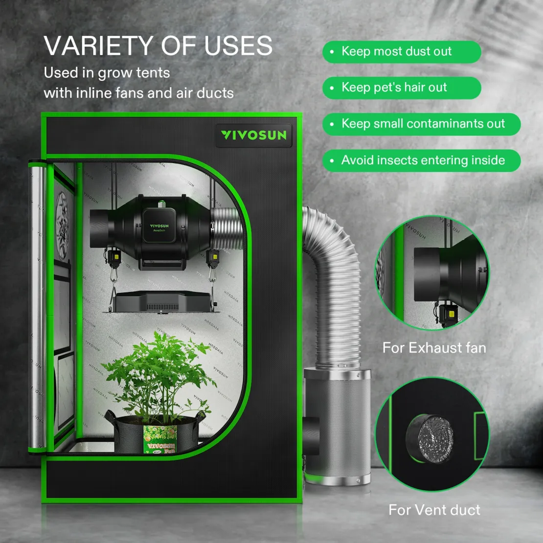 - The Vivosun vent filter dust cover is specifically designed to keep dust and small contaminants out with a fine mesh while still delivering superior ventilation.