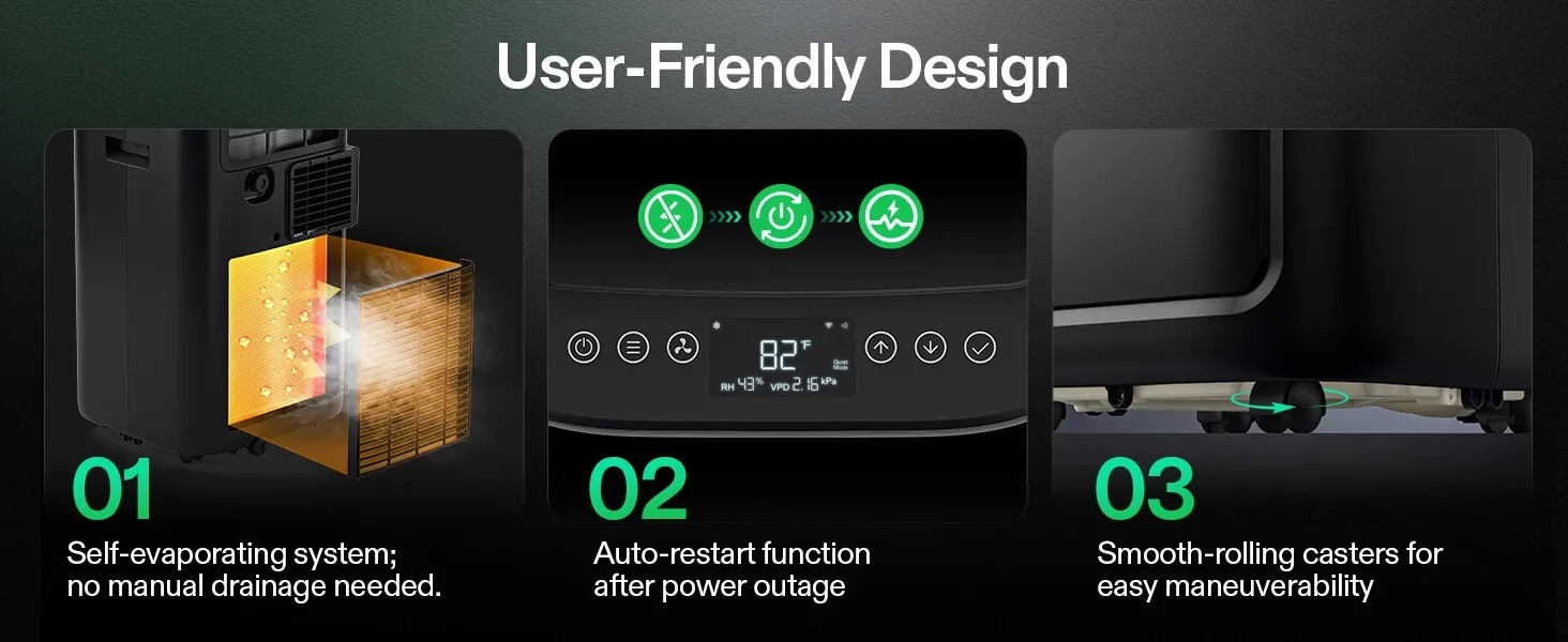 - 4-in-1 Versatility: Offers cooling, drying, heating, and fan modes, delivering complete climate control for optimal plant growth year-round