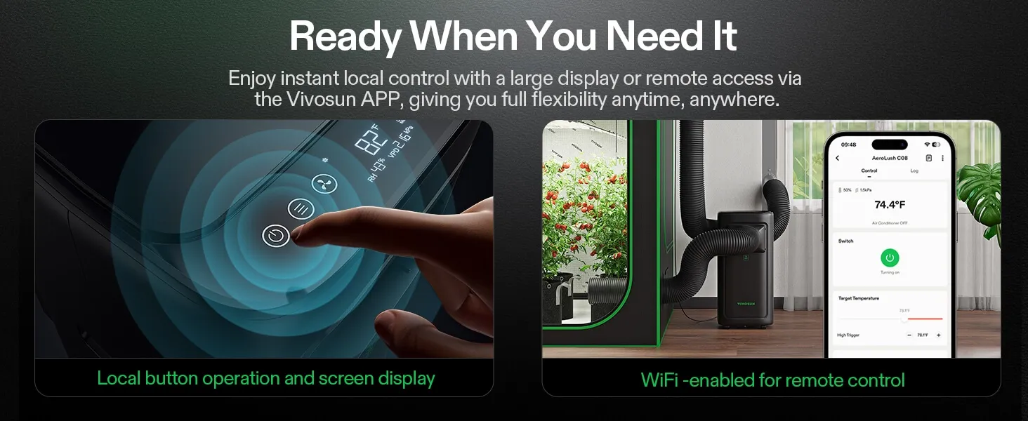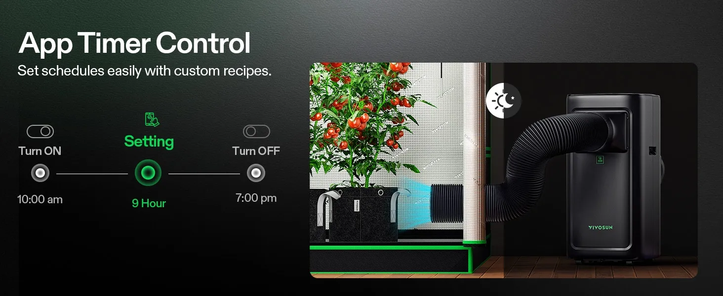 - Smart Control: Connects to the VIVOSUN app for remote monitoring and control, seamlessly integrating with the VIVOSUN Smart Grow System for automated synchronization with other devices