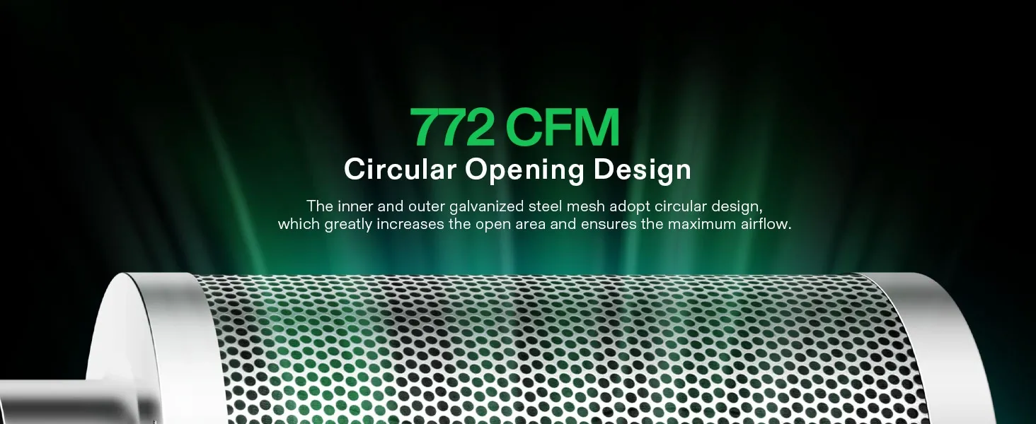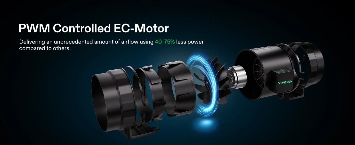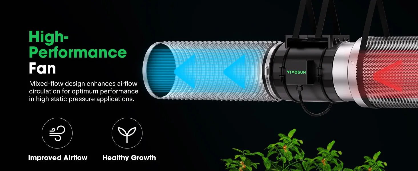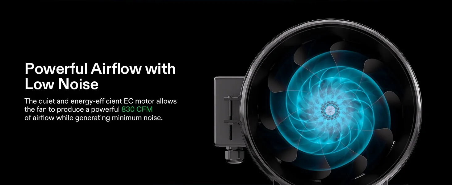 - Energy-Saving & Low-Noise Fan: The fan operates quietly at just 51 dB, and generates a strong 830 CFM of airflow that is fully adjustable to your grow space; Its PWM-controlled, mixed-flow design delivers air efficiently across long distances while saving energy